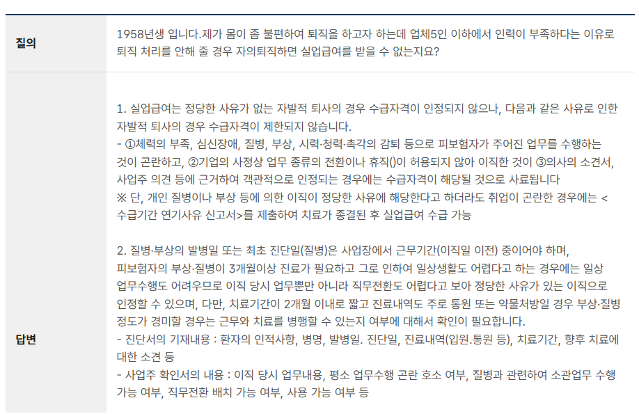 이직 사유: 정년퇴직, 계약 만료, 권고사직, 경영상 해고 등 비자발적 사유여야 함