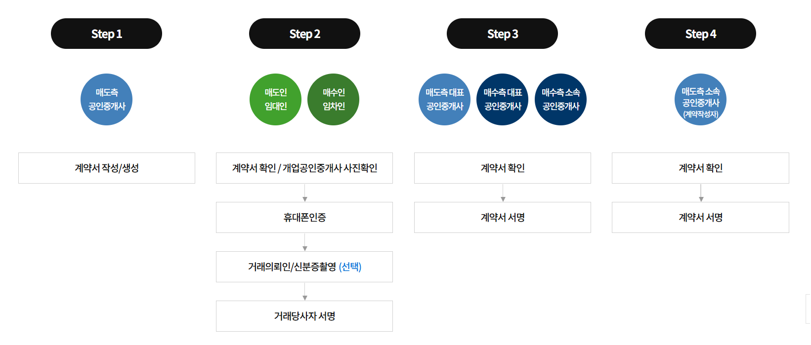 모든 계약 당사자는 휴대폰 인증 또는 공동인증서로 전자서명을 합니다. 이때 IP주소와 시각 정보가 자동 저장되어 추후 분쟁 시 법적 증거로 활용됩니다.
