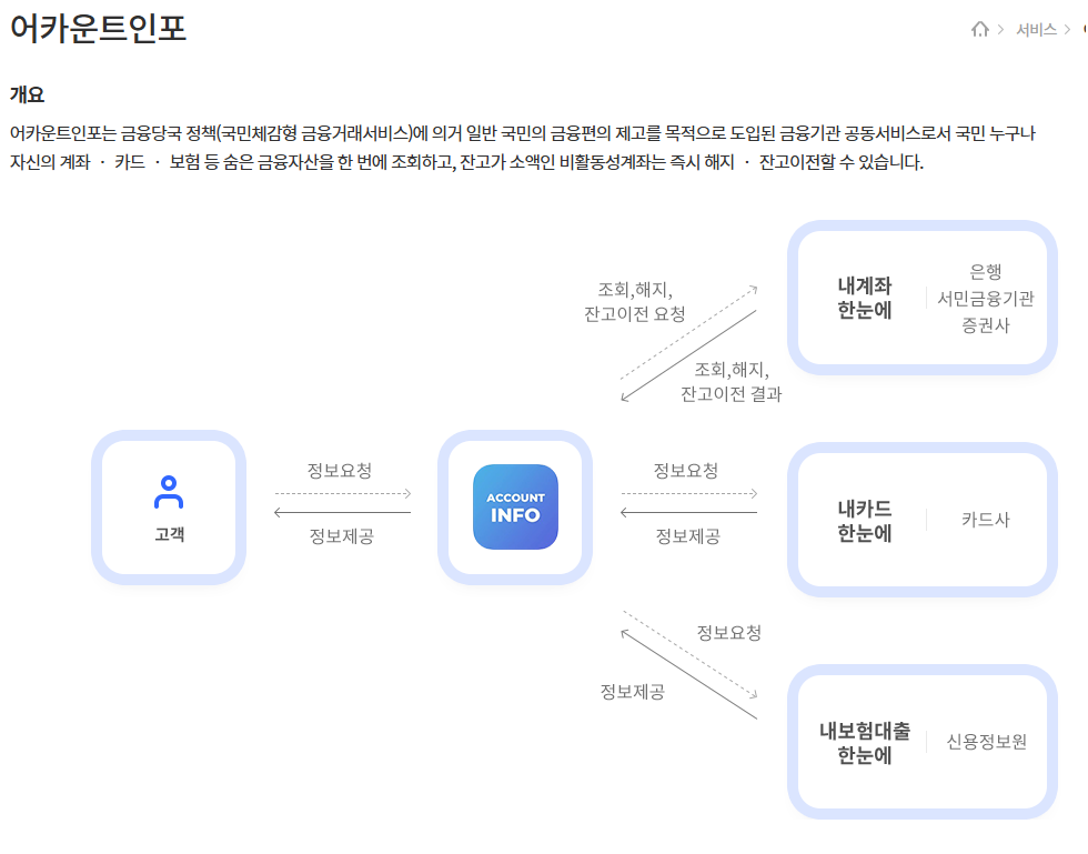 신청 절차는 금융결제원이 운영하는 계좌통합관리 서비스 '어카운트인포' 안내 페이지에서도 확인할 수 있습니다(금융결제원).