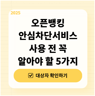 안심차단서비스는 “오픈뱅킹을 쓰지 않아도 되는 사람”, 또는 “보안 우려가 큰 사람”에게 특히 효과적입니다.