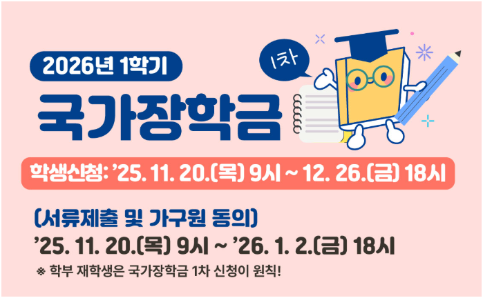 2026년 국가장학금 신청이 곧 시작되면서 대학생과 학부모들의 관심이 매우 높아지고 있습니다. 특히 1차 신청은 재학생에게 의무에 가깝기 때문에, 신청기간을 놓치지 않는 것이 무엇보다 중요합니다. 이 글에서는 2026학년도 국가장학금 신청기간·대상·지원금액·신청절차·주의사항을 모두 정리해, 처음 신청하는 학생도 문제 없이 완료할 수 있도록 작성했습니다.