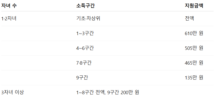 ✔ 다자녀 가구 지원금(Ⅰ유형)