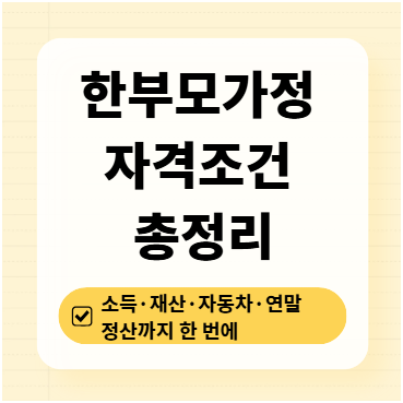 한부모가정 지원을 받기 위해서는 ‘누구나 해당’하는 것이 아니라 법적으로 정해진 소득·재산·가구 기준을 충족해야 합니다. 특히 자동차 가액, 연말정산 시 적용되는 세액공제까지 꼼꼼히 확인해야 실제 혜택을 온전히 받을 수 있습니다. 이 글에서는 2025년 기준으로 한부모가정 자격조건 전체, 소득·재산·자동차 기준, 신청 방법, 연말정산 공제, 자주 묻는 질문까지 모두 정리했습니다. 이 글 하나로 자격 여부를 바로 확인할 수 있도록 단계별로 구성했습니다.