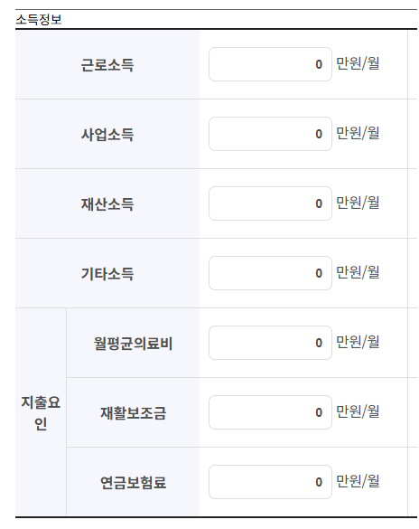 정확한 소득은 복지로 모의계산에서 조회할 수 있습니다.