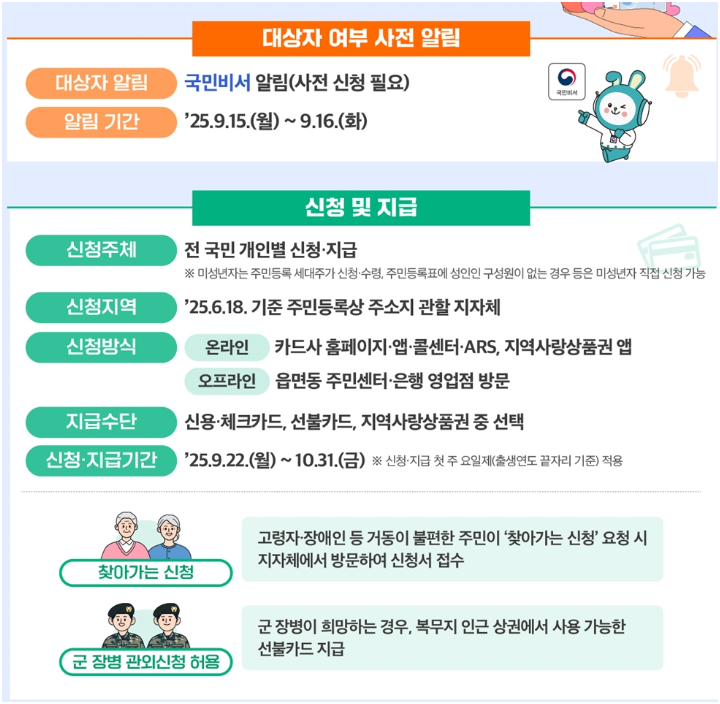 상세한 내용은 행정안전부 민생회복 소비쿠폰 사이트에서 확인가능합니다.