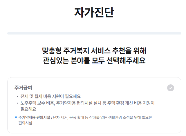 내가 주거급여 대상인지 사전 진단할 수 있습니다.