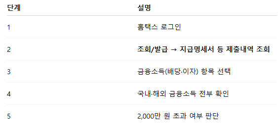 📌 [표 3] 홈택스 금융소득 조회 절차