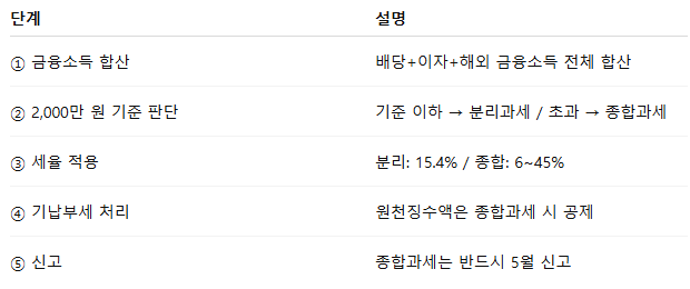 배당·이자 등 금융소득 종합과세 기준은 국세청(국세청에서 금융소득 종합과세 안내 제공)에 공식 정리되어 있습니다.