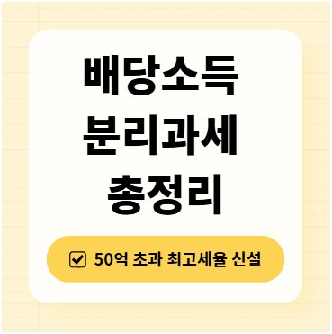 2025년 금융소득 과세 제도는 배당투자 증가와 함께 가장 주목받는 세제 이슈입니다. 특히 올해 하반기에는 정부와 국회에서 고액 금융소득자 과세 강화 방안이 논의되면서, 배당소득이 분리과세되는 기준, 종합과세로 넘어가는 조건, 그리고 50억 원 초과 금융소득 최고세율 30% 신설 논의가 큰 관심을 받고 있습니다. 이 글은 국세청·기획재정부 공식 기준과 최신 정보를 기반으로 배당소득 분리과세를 한 번에 이해할 수 있도록 정리했습니다. 배당소득 분리과세 관련 필요한 계산법·조회방법·과세구조를 표와 함께 쉽게 작성했습니다.