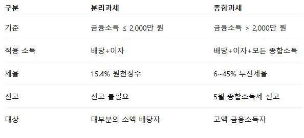 📌 [표 1] 분리과세 vs 종합과세 비교표