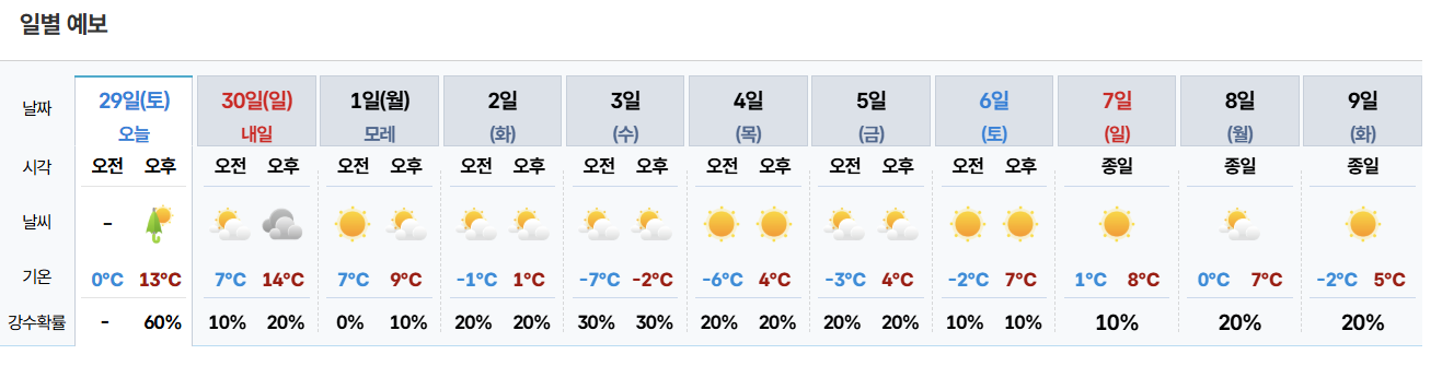실제 당일 날씨는 가까운 시점의 단기예보를 반드시 확인해야 합니다.