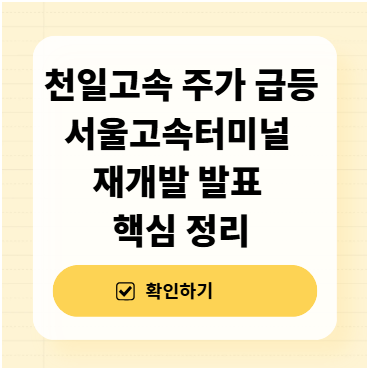 천일고속이 단기간 급등하며 시장의 이목을 집중시키고 있습니다. 이번 상승은 실적 개선보다는 서울고속버스터미널 부지 재개발 정책 발표에 따른 지분 가치 재평가 기대가 시장에 빠르게 반영된 결과입니다. 정책형 분석 관점에서 이번 이슈를 설명하기 위해 재개발 발표 내용, 관련 지분 구조, 절차 흐름, 시장 반응과 주의할 점 등을 종합 정리합니다.