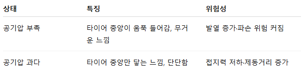 겨울철에는 권장 공기압 대비 +1~2psi 유지하는 경향이 있음