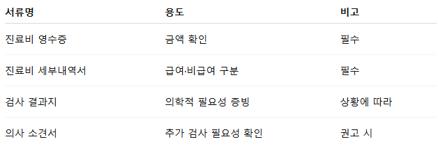 📌 [표 2] 실비 청구 시 필요한 서류 정리