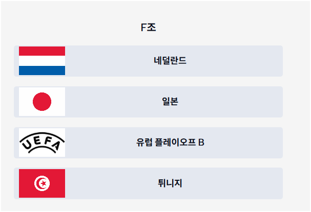 F조 : 네덜란드, 일본, 유럽PO B승자, 튀니지
