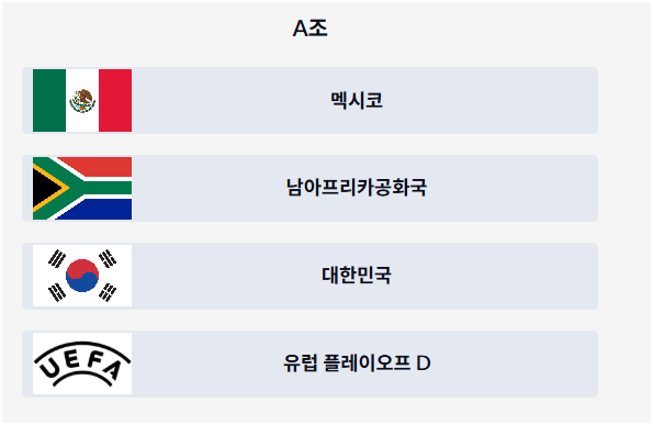A조 : 멕시코, 남아공, 대한민국, 유럽PO D승자