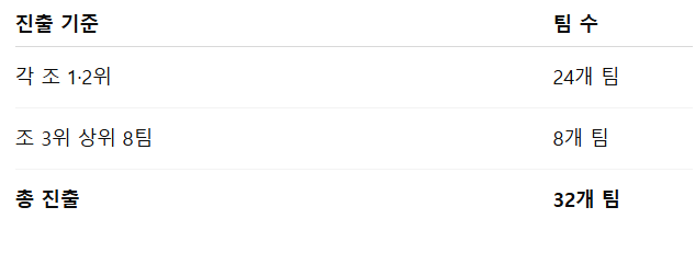 3위라도 승점·득실 관리로 32강 진출이 가능한 구조 때문입니다.